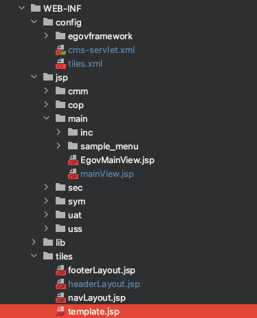 egovframework샘플밖으로 servlet.xml 과 tiles.xml 을 만들어줌
