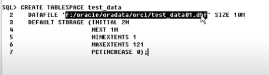 DATAFLE 'f:/oracle..' SIZE 10M
