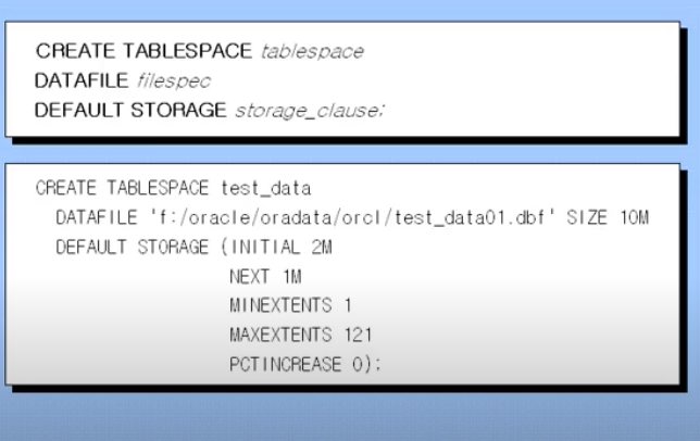 PCTINCREASE 0); -- PCTINCREASE는 NEXT에 할당된 것을 퍼센트로 보여줌