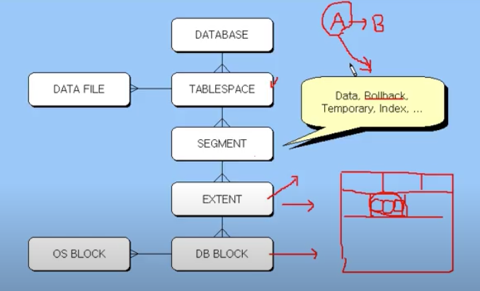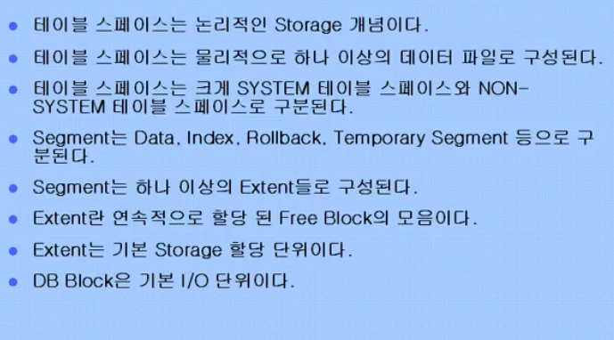 - Temporary Segment (세그먼트긴한데 임시로 사용되는 거) , Application Data Segment (어플리케이션에서 발생되는 데이터들을 담는곳), Index Segment (쿼리의 속도를 높이기 위해서 ) , User Data Segment