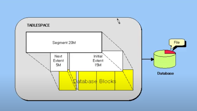15메가짜리 extent(테이블) 을 만들어라 근데 그 데이터가 넘으면 옆에 남은 NextExtent 에서 5m가를 받아라