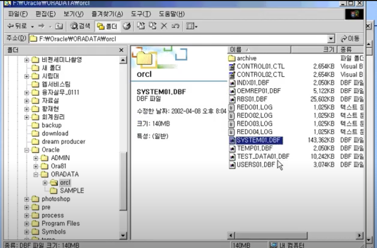 SYSTEM 테이블 스페이스는 이미 만들어져있음