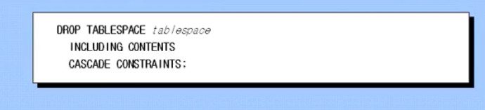 INCLUDING CONTENTS 를 쓰게 되면 테이블스페이스안에꺼 까지 다 삭제 가능